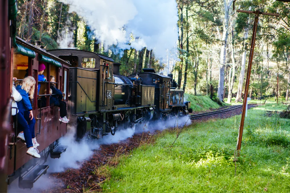 【移動のヒント】個人で行く場合は、メルボルン中心地のフリンダース・ストリート駅から、ベルグレイブ線(Belgrave Line)に乗って終点の「ベルグレイブ駅」まで約70分。駅からパッフィンビリーの乗り場までは、案内板に沿って歩いてすぐです。