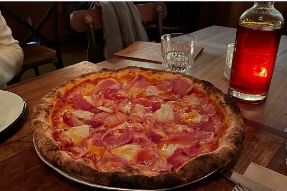 口コミでは「人生で一番おいしいピザ」と称されるほどの逸品で、グルテンフリー対応なのも嬉しいポイント。