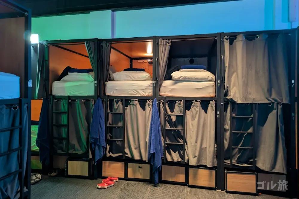 カプセル型ベッドより少し高めですが、鍵付きのお部屋に泊まれる安心感と、二人でシェアできる点を考えると満足度は高いです。