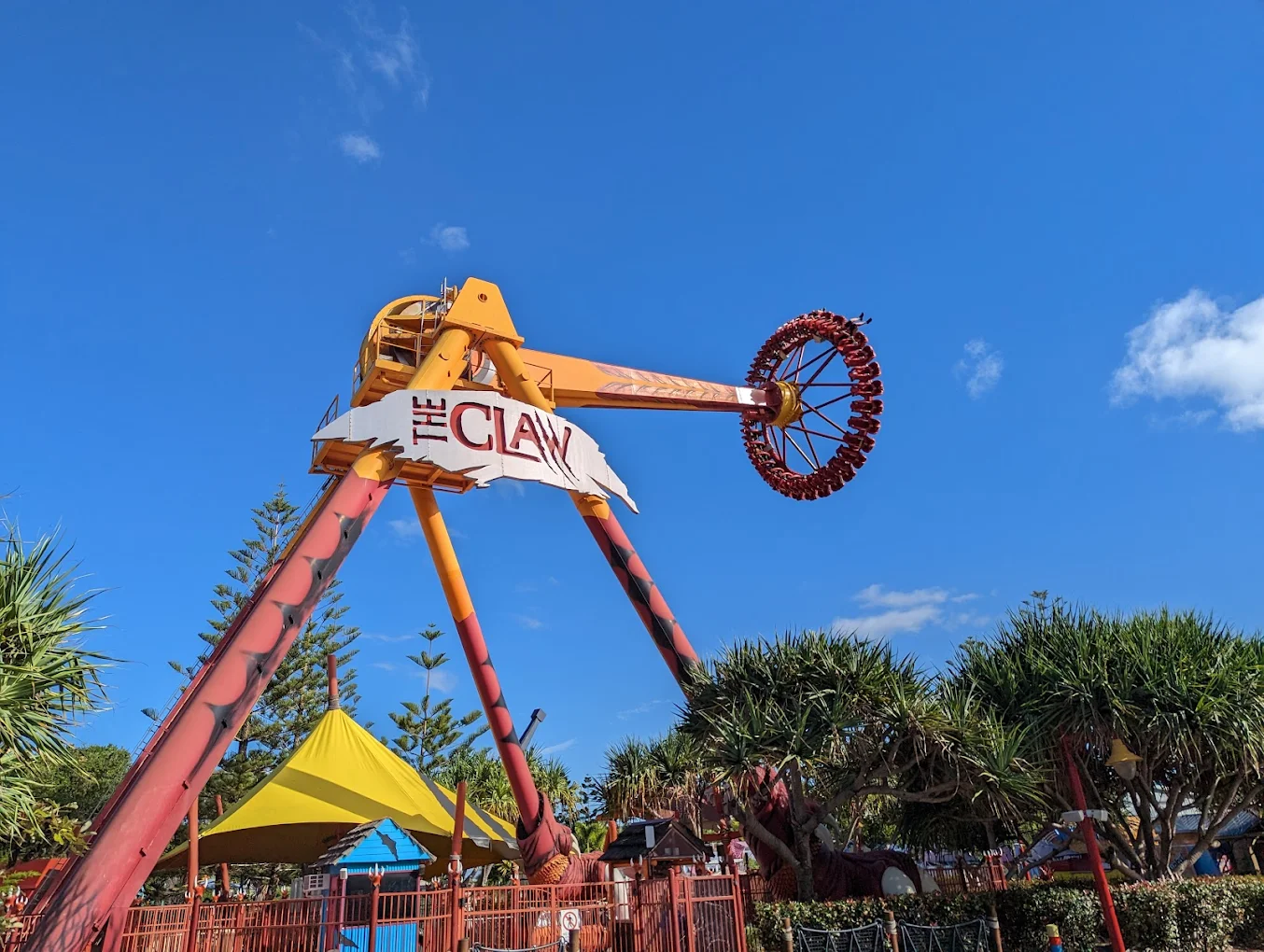 King Claw(キングクロー)は、巨大な振り子が左右に大きくスイングしながら回転するライド。最高到達点では地上約9階建てビルの高さまで持ち上げられます。
