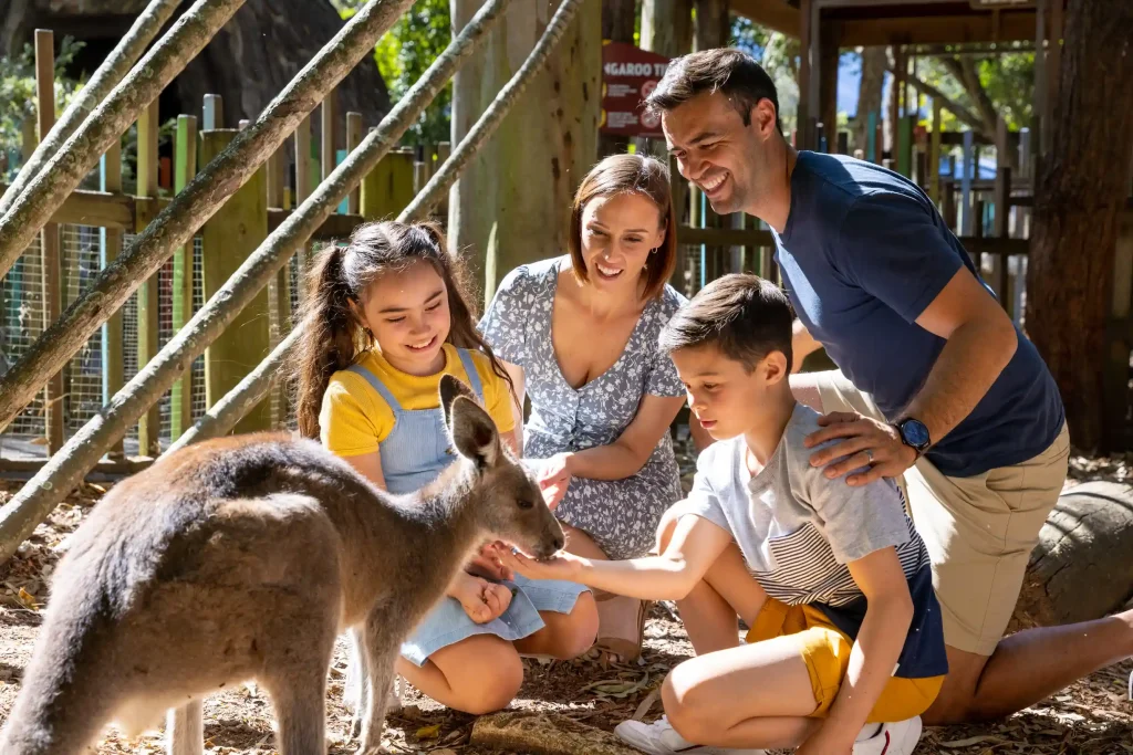 ドリームワールドのもうひとつの大きな魅力が、パーク内にある本格的な動物エリア。テーマパークのライドで遊びながら、同じ敷地内でオーストラリアの動物たちとふれあえるのは、なかなか贅沢な体験です。