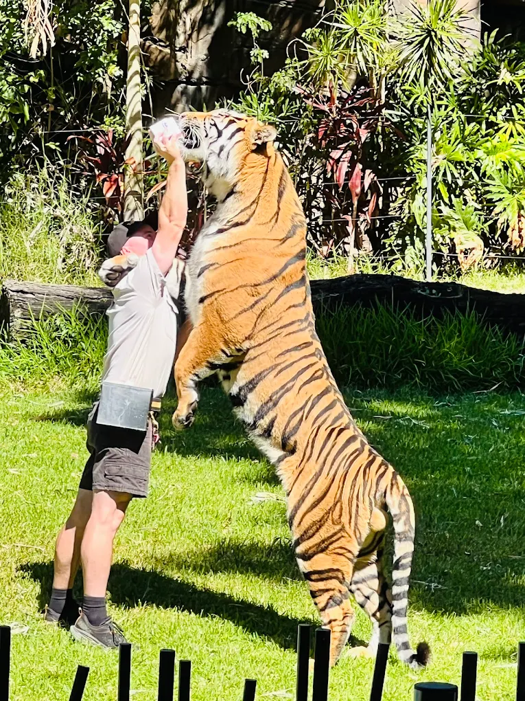 ドリームワールド内にある「タイガーアイランド(Tiger Island)」は、ゴールドコーストで唯一、ベンガルトラやスマトラトラを間近で観察できるスポットです。ガラス越しに目が合った瞬間の迫力は、動物好きでなくても思わず息を飲みます。