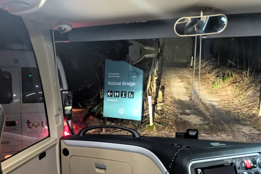 目的地のスプリングブルック国立公園「ナチュラルブリッジ」に到着した頃には、あたりはすっかり暗くなっていました。
