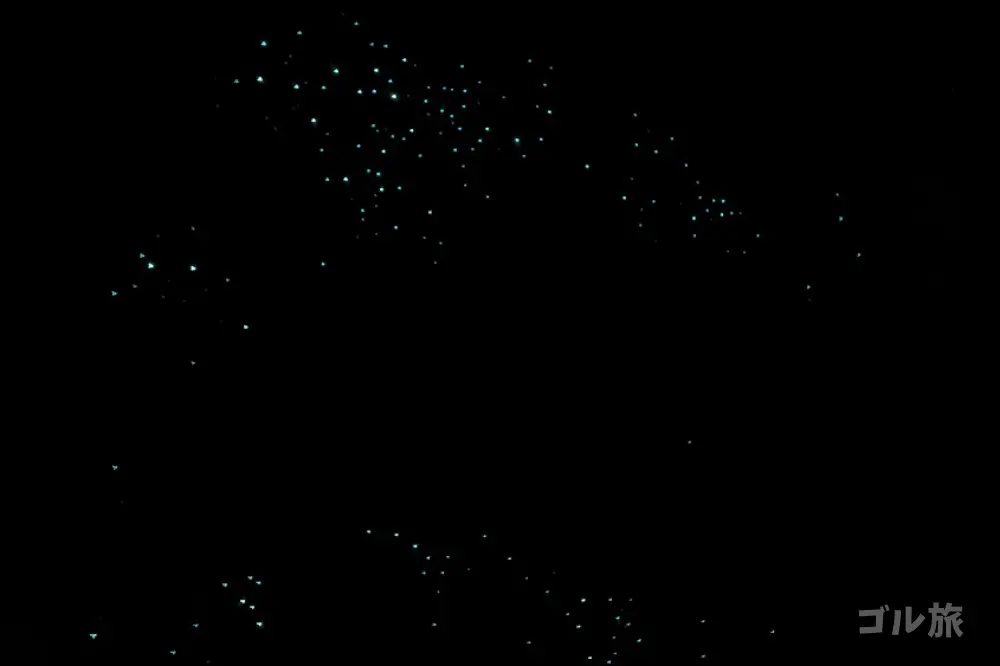 写真ではなかなか伝わりにくいのが悔しいですが、無数の青い光が、まるで天井から垂れ下がるイルミネーションのように輝いています。(ぜひ生で見に行ってみてください!)