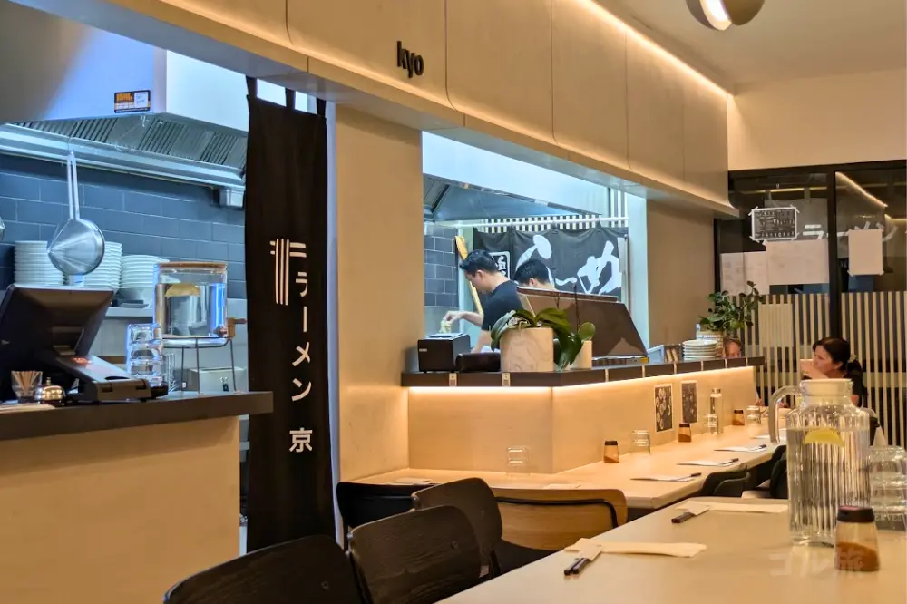 Mermaid Beachに新風を吹き込む「Ramen Kyo」は、白を基調としたミニマルな内装に、自家製麺と低温調理された鶏チャーシューが映える実力派のお店。