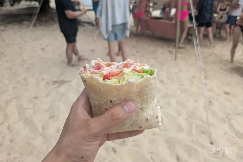 メニューは、オーストラリアのド定番「ラップ」。薄いフラットブレッドに、レタス・トマト・チーズ・ハムなど好みの具材を自分で巻いて食べるスタイルです。