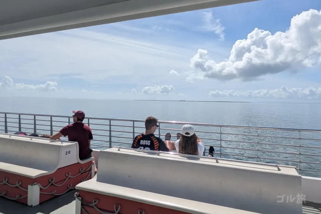 ここから島に向かって1時間15分ほど船の旅です。