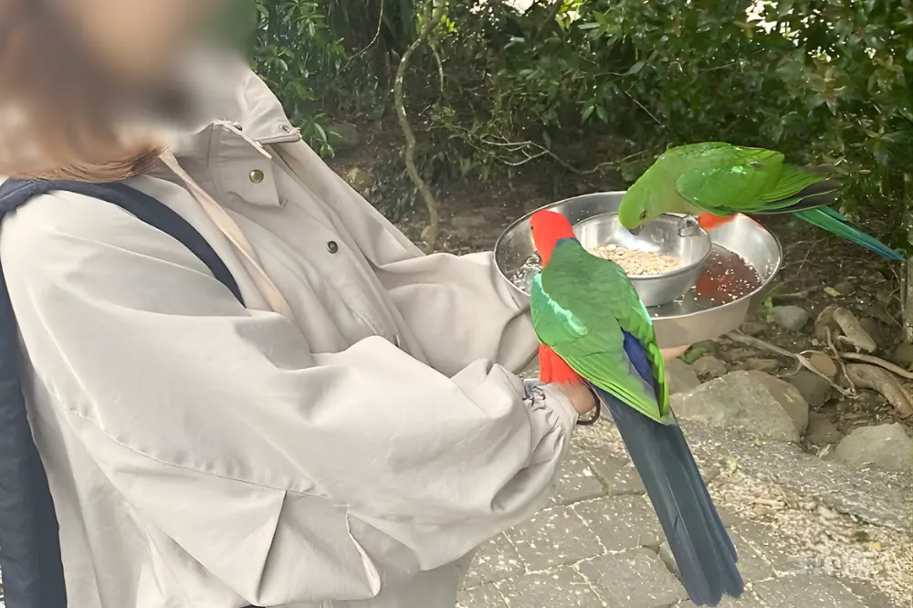 野生のオウムやインコとのふれあい