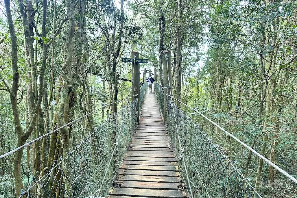 最初の一歩は少しスリルがありますが、橋の上から見下ろす緑の海は圧巻。