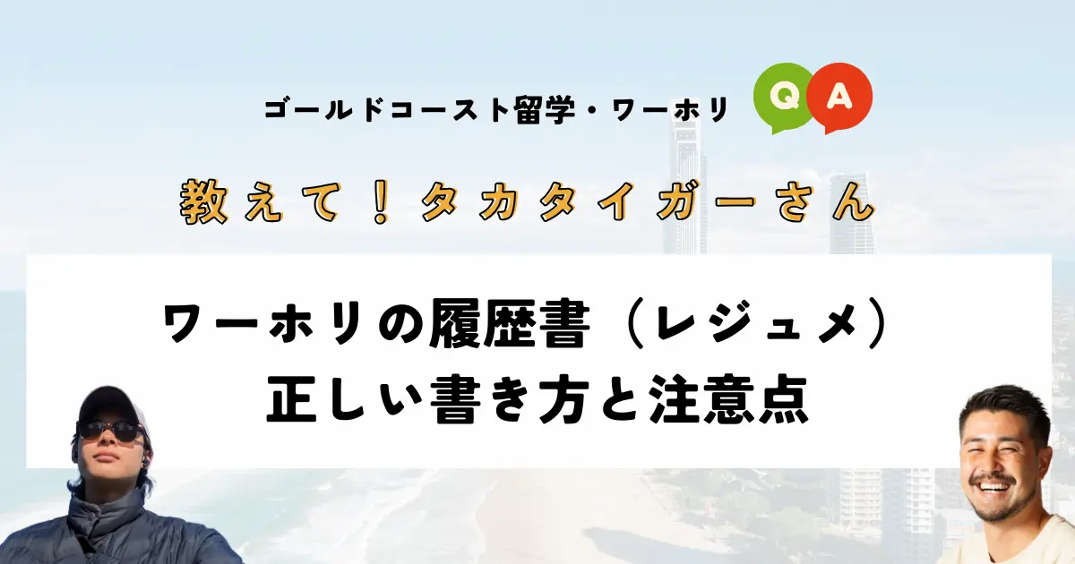 【教えて!タカタイガーさん】ワーホリの履歴書(レジュメ)正しい書き方と注意点