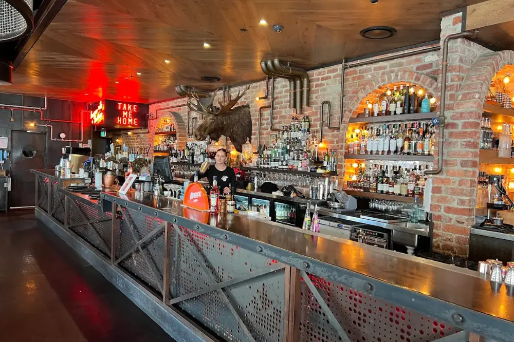 The Loose Moose は、ブロードビーチのメインストリート沿いにある活気あるパブ。